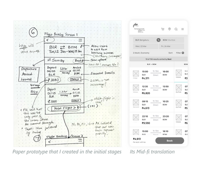 As a part of the product team, I led the end-to-end design of the BLR airport app's flight booking service experience, including all product research, stakeholder communication, design, and prototyping. I also set up weekly meetings with developers, designers, and product managers to iterate rapidly while considering diverse perspectives in my work.